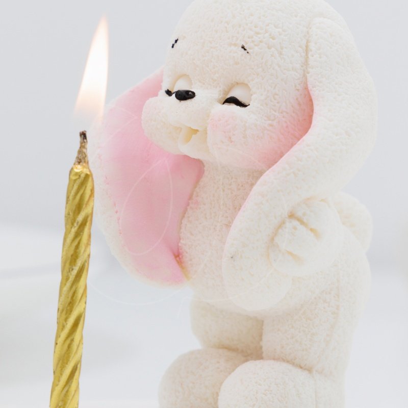Фигурка из шоколадной глазури "Зайка со свечкой белый"
