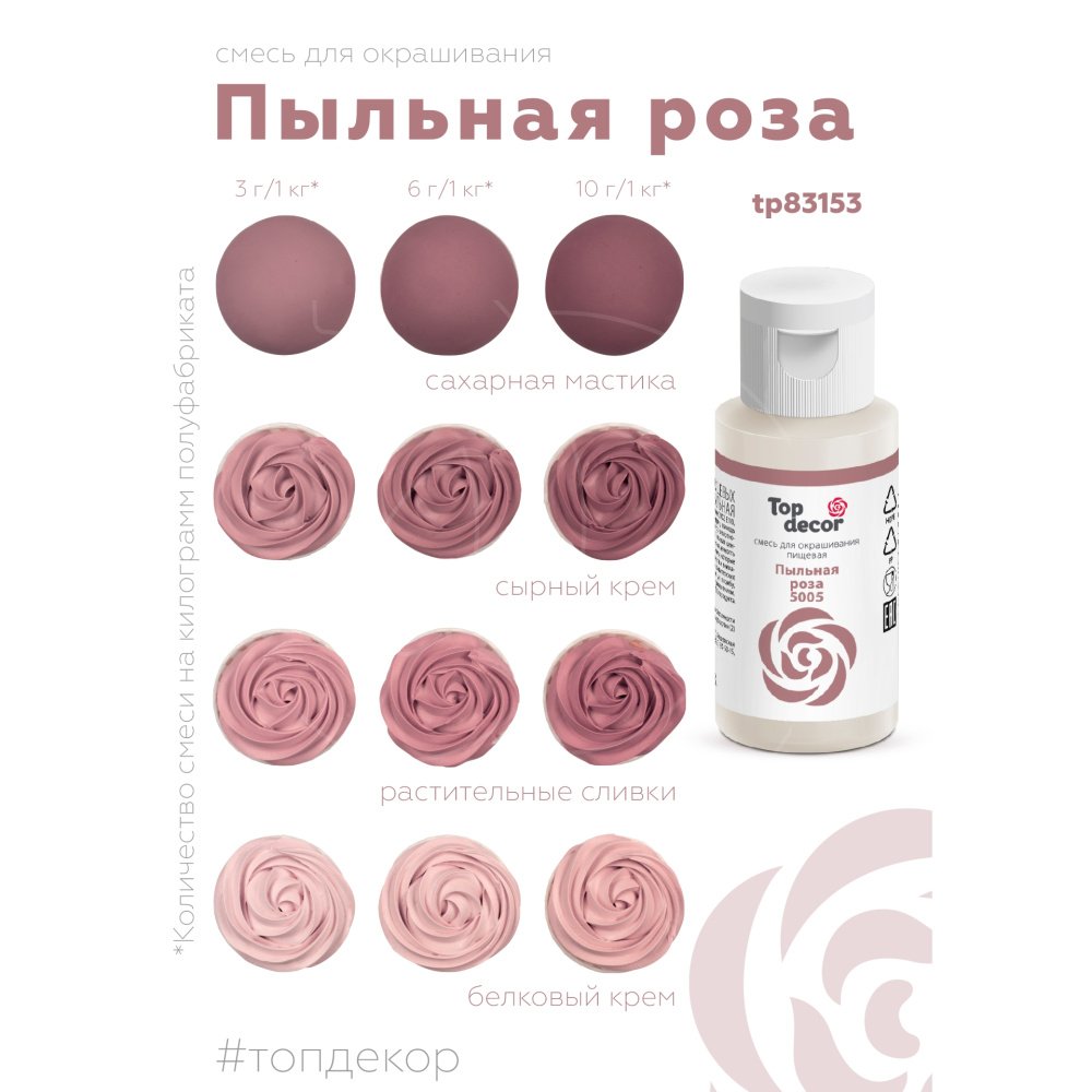 Доставка Краситель пищевой гелевый водорастворимый Top Decor Пыльная Роза 30 г из магазина в вашем городе: