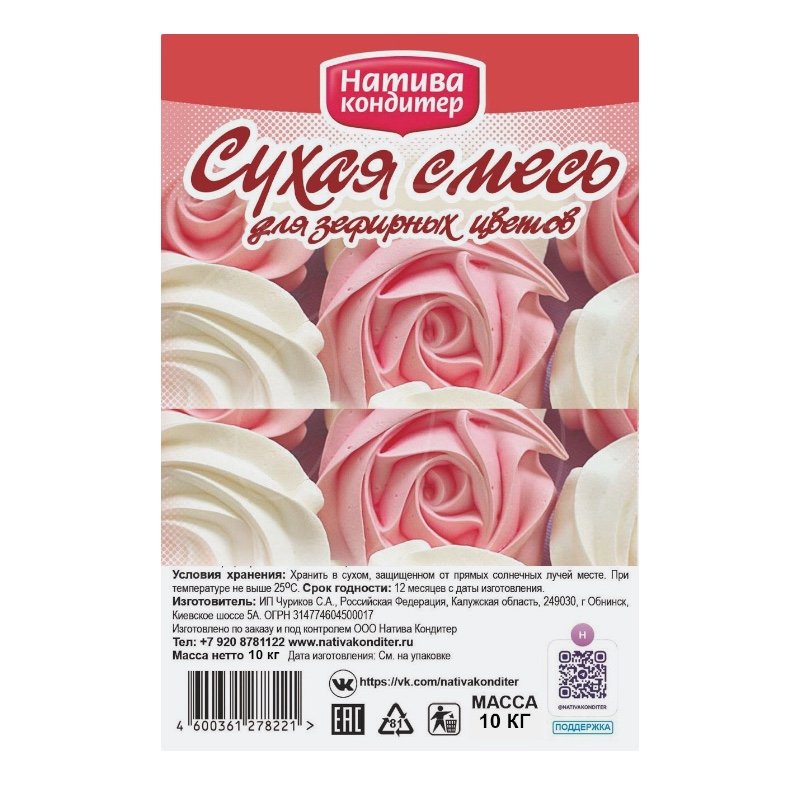 Сухая смесь предназначена для приготовления зефирных цветов.