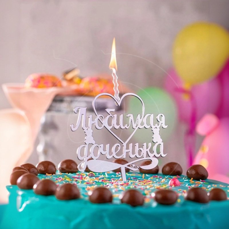 Доставка Свеча-топпер декоративная акриловая "Любимая доченька" Серебро из магазина в вашем городе: