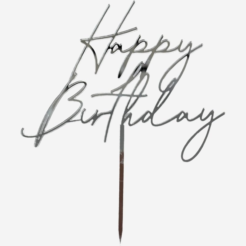 Доставка Топпер декоративный акриловый "Happy Birthday" Серебро из магазина в вашем городе: