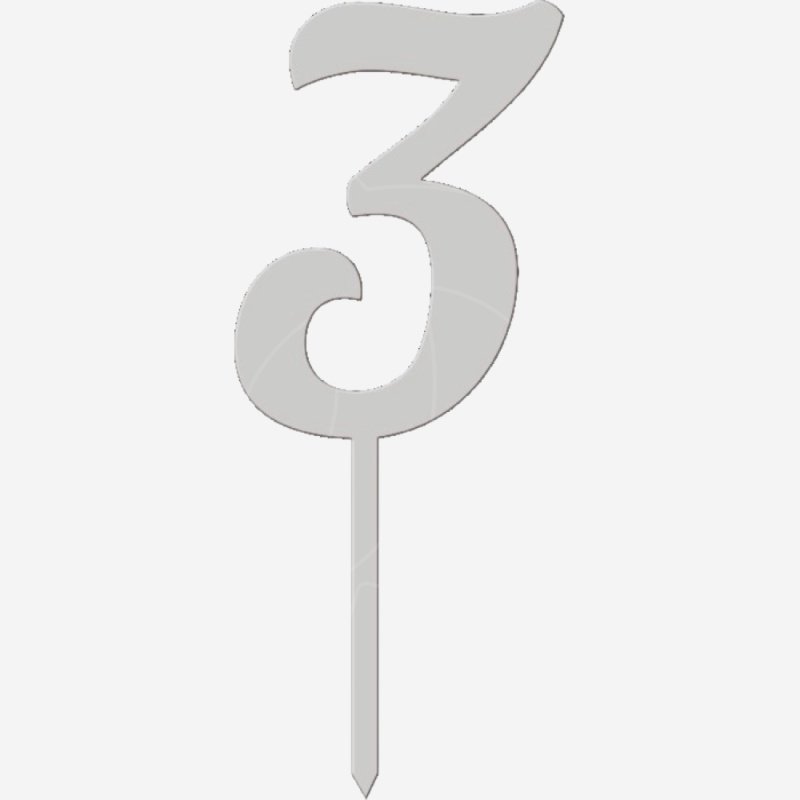 Доставка Топпер декоративный акриловый "Цифра 3 на палочке" Серебро 6,5 см из магазина в вашем городе: