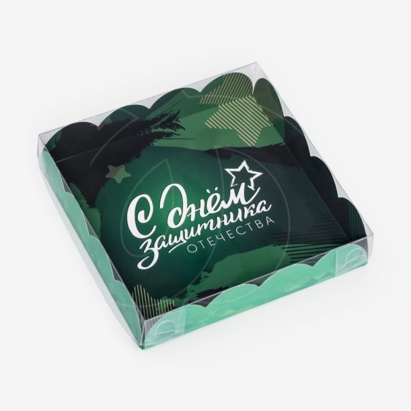 Доставка Коробка для сладостей с прозрачной крышкой "23 февраля" 15х15х3 см из магазина в вашем городе: