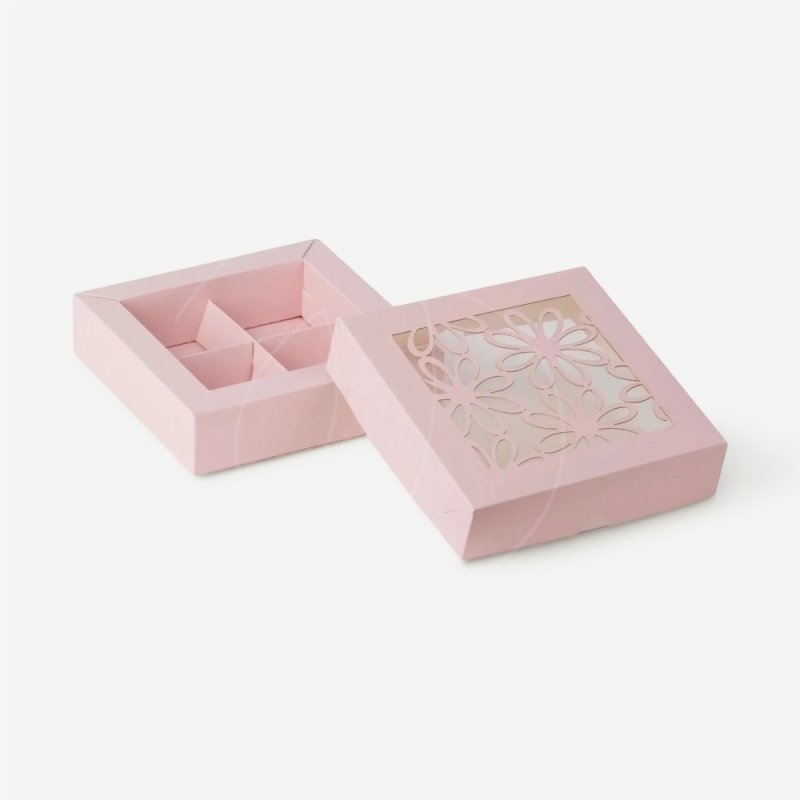 Доставка Коробка на 4 конфеты с окном "Ромашка" розовая из магазина в вашем городе: